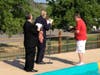 Wedding ceremonies Thursday morning were performed by Rev. Bob Barker and Rev. Jay Kilb, of All Couples Married. The St. Louis-based ministers were connected to each couple from the rides' end by microphone. Prior to the water-inspired ceremony, Barker encouraged the Chavezes to have fun and know that all would be fine.