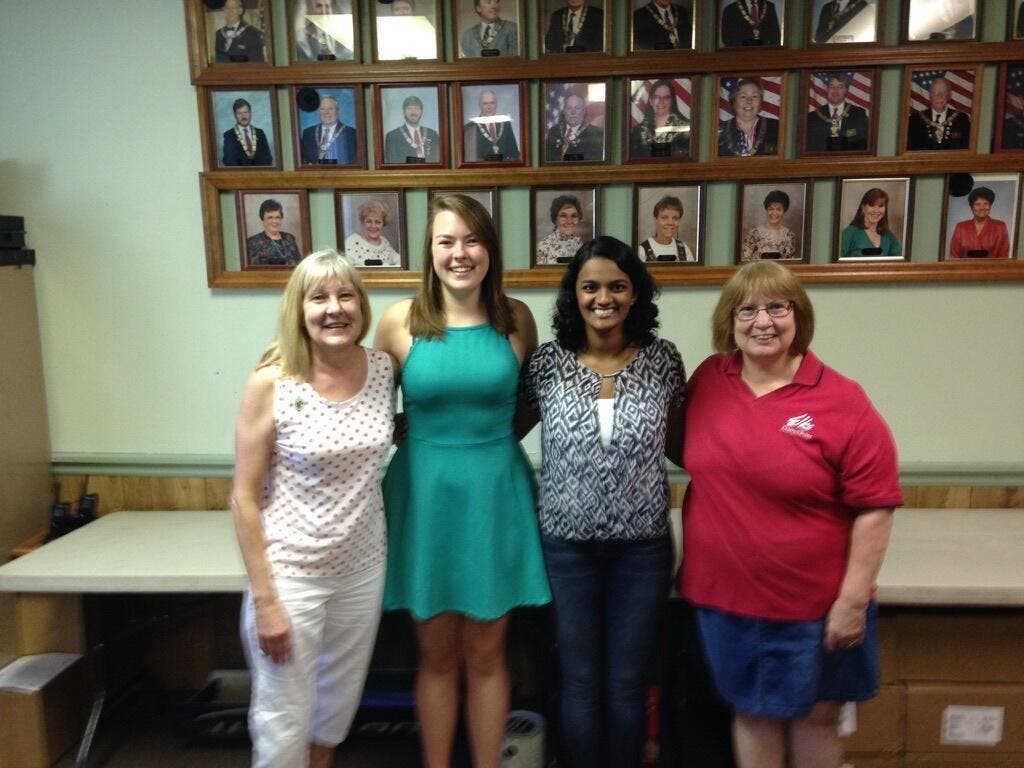 Picture (L-R) Cindy Ewing (Scholarship Chair) Scholarship Winners, Amanda Biggs and Ramya Palaniappan, Cis Russell (ER)