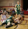 Kennedyβs Paige Stewart, who fouled out near the end of the game, led all scorers with 24 points.