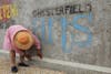 The kids, along with artist Stuart Morse, set to work planning the design for the mural. Scenes from the mural showcase the region's past and present. At one end, two explorers look over a wild expanse. At the other end, there's a cityscape. The day promises to create a Chesterfield landmark that will last for years to come. The mural is being painted awith industrial-strength paint, and Chesterfield Arts will do touch-ups when needed.