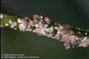 An armored scale is less than 1/8 inch in diameter and has a cover that is flattened and plate-like. A small tube-like projection stems from the middle of the armor and is surrounded by rings that get bigger as the insect grows. The insect body lies underneath the protection of the cover. The armored species of scale do not excrete honeydew.