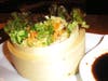 If you've never had Thai dumplings, understand that they are nothing like Chinese dumplings. Round with a very thin dough wrapped in a cylinder around the filling, Thai Sawadee's version—Thai Su Mai ($5)—featured ground shrimp, chicken and water chestnuts with roasted garlic on top. The taste was savory with a hint of sweetness, along with a delicious dipping sauce. Each flavor took its turn on my palate, and the occasional bits of crisp green onion were a nice surprise.