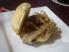 Lunch included a sliders appetizer: four beef brisket sliders with spicy barbecue sauce and fried onion straws. The barbecue sauce was well-balanced and restrained. It was not overly sweet or annoyingly spicy, making it easy to eat. The manager informed us that it is Patti Hildebrand's grandmother's family recipe.
