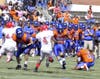 The first interception came on the second play of the game when Brown tried to hit a receiver on a quick slant. Senior defensive back Damon Howell read the pass, picked it off and weaved through traffic 40 yards to score the touchdown.