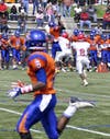 Brown did not let the interceptions stop him from passing. He threw two touchdowns of his own, both to junior running back Aaron Adams. The first came on a 47-yard pass in the first quarter, and the second happened in the opening seconds of the fourth.
