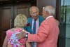 Dielmann, paired with his wife, Pat, donned a red rose boutonniere and corsage respectively and greeted an expansive line of guests in the Center's front hall. More than 400 RSVP'd -- and then more showed up at the door, according to Nancy O'Loughlin, city executive office assistant and co-organizer for the event.Β
