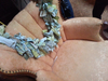 As we were headed back to buy a MISS JUBILEE CD, we passed by Villa Design and I couldn’t help but notice these unique necklaces; the one pictured below and another, which I purchased, and is presently around my neck. Anyway, Melissa Villadiego only meant to be helpful when she motioned to something behind me, and I turned to see several more hanging enticingly from a display I’d passed by in my haste. I looked at her and sighed. A moment ago I only had to choose from two, now there were twelve to choose from. My daughter looked at me and I looked back at her with uplifted brows. “That one,” she says and points to the one with the aqua-colored cord, answering my unvoiced question. She was right. That one it is.
