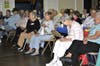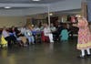 Once residents finished up with cookie and ice cream sandwiches for dessert, they gathered around the stage and were greeted by Taylor, who wore a red and white checkered ruffle dress with yellow and orange daisies and the famous floral-lined straw hat with a $1.98 price tag. She did provide a great big howdy!