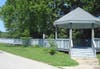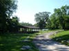 5. Ghost of bridges past. A stone gazebo across the street from the provides a historic view of the river. The gazebo marks the spot where a ferry crossed the river in 1833, landing in what is now Sunset Hill’s Minnie Ha Ha Park. It is also the spot where a cover bridge crossed in 1854 and a one lane iron bridge in 1885. The current Highway 30 bridge is visible up river and the under-construction Gravois bridge can be seen down river.