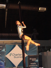 The first networking event in St. Louis to include entertaining the guest with aerial artists, Meg on the hoop and Clare on the ribbons from Bumpershoots Aerial Artist Studio performed spectacular feats as they entertain the attendees hanging from the 18 foot ceilings. βWe wanted to express our gratitude to our members and those who had supported us this past year. What better way than networking and socializing to celebrate a high flying successful year?β