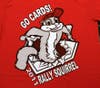 He thinks he might be the first St. Louis T-shirt printer to capitalize on the furry rodent who won the hearts of Cardinals fans during the World Series. He printed up a batch of red shirts with a squirrel bursting out of home plate on October 7. Unfortunately that design also sported the slogan “Go Cards!” which Major League Baseball took offense to and sent him a cease and desist letter. He willingly stopped selling that particular design, but the legal incident sparked an even bigger idea.
