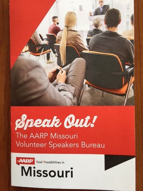 "Speak Out!", the AARP Missouri Speakers Bureau in St. Louis has trained and experienced volunteers who offer free educational presentations to members and a wide range of organizations in the community. Topics have a broad appeal to a variety of audiences and are relevant and engaging as well as designed to enhance the quality of life in a changing world.