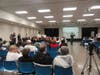 Approximately 200 people crowded into the multipurpose room at the St. Louis Community College at Florissant Valley campus to hear the redevelopment plans for the area.