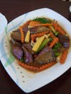 Their fried rice, noodle, curry and stir-fry dishes all come with the option of being made with mixed veggies or tofu (in addition to meat and seafood options). Their specific vegetarian menu items are Stir-Fried Asparagus and Eggplant, Stir-Fried Tofu and Mixed Vegetables, all of which come with rice on the side.
