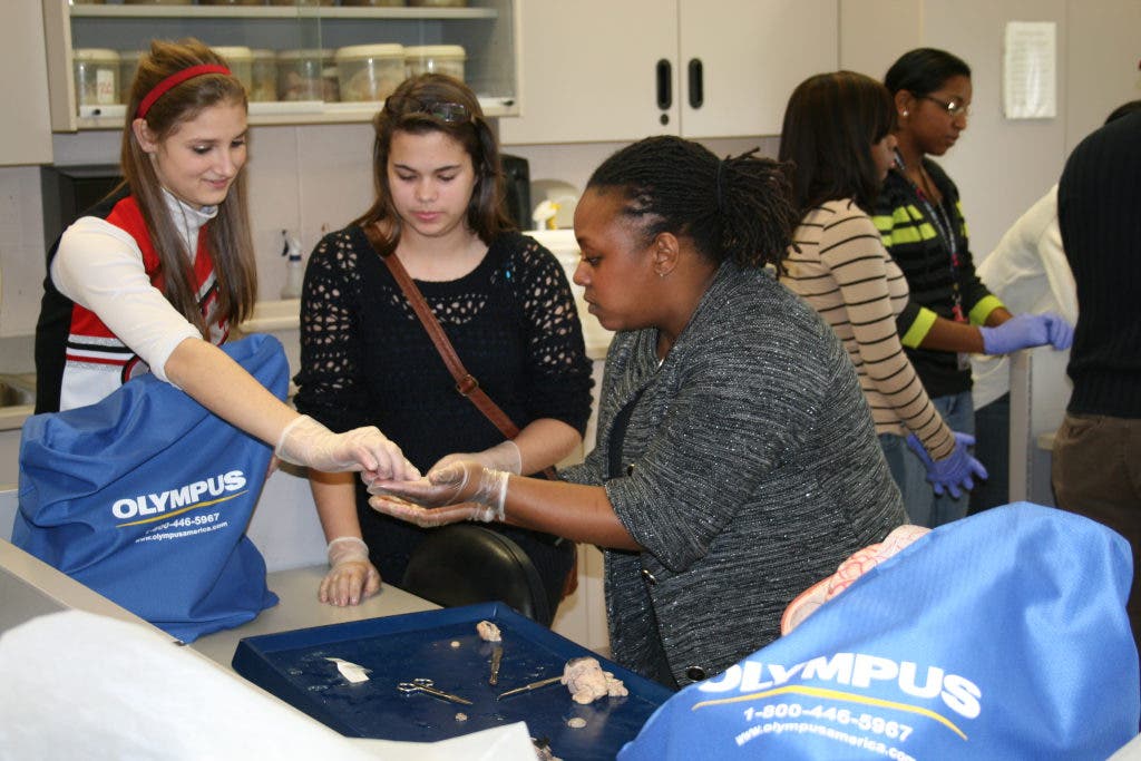 College faculty members gave presentations on the preparation needed for optometry school, how the field compares to other health professions and the benefits of optometry as a career choice. Third-year optometry students gave the Hazelwood West students a tour of the College of Optometry. The high schoolers also received hands-on experience with examination equipment in the pre-clinic area and took in an eye dissection during an anatomy and physiology lab and a discussion on ocular anatomy and physiology.