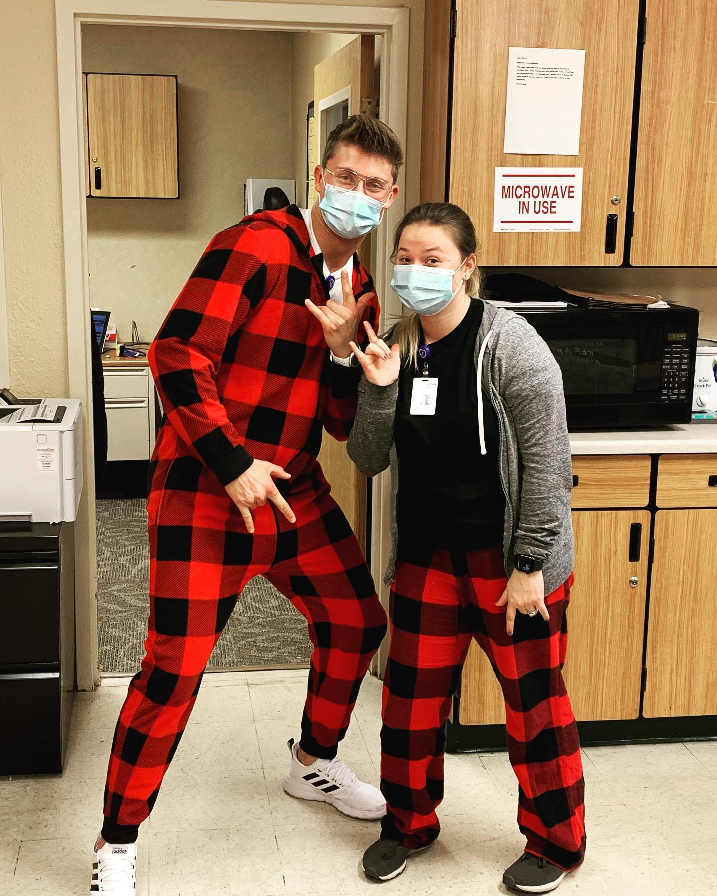 Staff All Dressed in Their PJ's Get Confy-Cozy Bringing Smiles and Laughs To Work