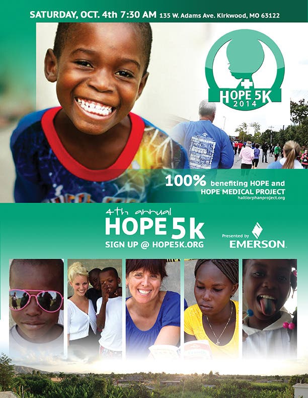 Kirkwood based The Haiti Orphan Project supports caring for orphaned and abandoned children in Haiti. Their 4th annual HOPE 5K is scheduled for October 4, 2012 in downtown Kirkwood, MO.