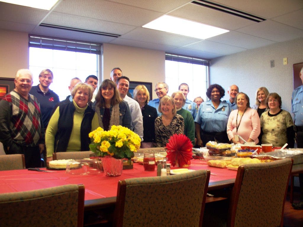 Pictured from left to right are (first row) Keller Williams’ team members including Judy Korn, Carolyn Tumminia, Becky Scherzer, Laurie Domke Goodfellow and Kathy Hatcher (second row) Keller Williams’ Andy Hannigan, Chief Jack Plummer, Officer Thomas O’Brien, Detective Tim Brand, Lt. Detective Scott Bailey, Detective Dave Smith, Sgt. Tim Dixon, Officer Adam Evers, Code Enforcement Officer Kathy Hawkins, Dispatcher Stephanie Newton, Officer Bob Bruhy, Records Clerk Sharon Smith, Court Clerk Judy Fore and Keller Williams’ Pati Slay.