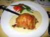 Porc Grille was also served with Butcher’s Wife sauce. The thick, bone-in pork chop was succulent, accompanied by creamy garlic mashed potatoes. Poulet DeBergerac was a large chicken breast with cheese wrapped in a flaky puff pastry. This dish was so rich I could only eat half, and, unfortunately, a fellow diner with the same entrée found his chicken to be dry, though he enjoyed the puff pastry.