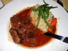 By far the favorite entrée of the night was Saumon a la Moutard. This salmon dish was heavenly. The fish was cooked to perfection even though the piece of fish was inconsistent in thickness, as salmon tends to be, the thinner end was as tender and flaky as the thicker end. The mustard sauce was a spicy delight, slightly creamy but not nearly as heavy as some French sauces can be.
