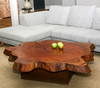 “What I’m doing right now is really born from a love of the wood and the raw, natural materials with which I work,” he said while sitting in his workshop on his 40-acre farm in Dow. “I take my inspiration from the natural forms of the trees and try to let each slab of wood be what it wants to be rather than me imposing my will upon it. I could take a piece of wood and torture it into any shape I want, but I think it’s more challenging and rewarding to let the wood be what it wants to be.”