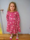 For a similar look for a four-year-old girl, try a pink floral-printed Lands' End T-shirt dress ($8.99) that is even more fun with multi-colored striped Gymboree tights ($2.99).