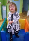 For a two-year-old girl, go for an absolutely adorable black and white printed and ruffled Tralala dress ($14.99), which looks cute with a pair of black tights ($1.99) and black lace-up Stride Rite boots ($8.99).