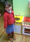 If your four-year-old girl is in need of another fun look, try a red Tea button-up sweater ($14.99), a Gap denim skirt ($6.99), red tights ($1.99) and brown cowgirl boots ($12.99).