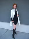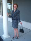 Upscale Resale can also help you with your work wardrobe. A black and white St. John suit ($450) looks perfect with a pair of strappy black Saks Fifth Avenue heels ($40) and a black Valerie Stevens bag ($18).