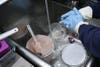 Soap-making is not all pretty scents and flower petals, though. The chemical reaction that produces soap, called saponification, involves combining oils with lye. Lemp wears protective gloves and glasses when she is mixing and handling the lye, because just a drop of it can cause a painful burn. No need to fear that bar of soap in your shower, though—once the saponification process completes, there is no lye left.