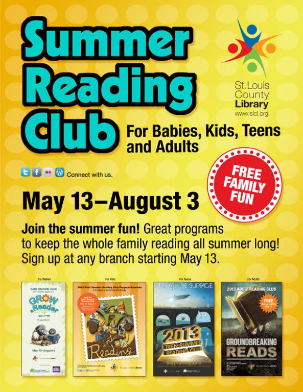 St. Louis County Library's popular summer reading clubs will kick-off early this year starting May 13 and running through August 3.
