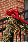 - For a more elaborate treatment, hang cone-shaped baskets filled with evergreen and ornaments from the overhang of your front porch or portico. They will look lovely blowing softly in the wind.