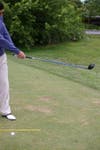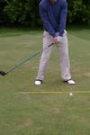 Odds are, after a few practice sessions, you’ll learn that the right spot is a few feet before the ball with a slightly open face at impact.