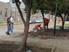 Now “Team Depot” has taken the exterior improvements to a new level by constructing an attractive retaining wall around the school's entrance and front garden. The 13 volunteers also built a picnic table and a raised bed for student gardening projects within the fenced playground. Indoors, they gave the school's library a fresh coat of paint. The Team will return in a few weeks to landscape the front entrance with plants from their stores' inventories.