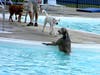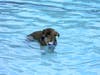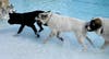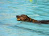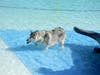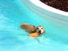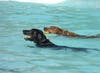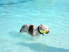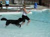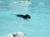 The pooches took to the pool for a swim.