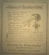 According to Rosemary Davison’s 1982 community profile of Maplewood, in 1913 Harper's Pharmacy first opened for business in the turreted building on the NW corner of Sutton and Hazel. In 1912, Will. H. Harper was listed as living at 7373 Flora. The pictured ad is from a 1916 Maplewood Champion newspaper.