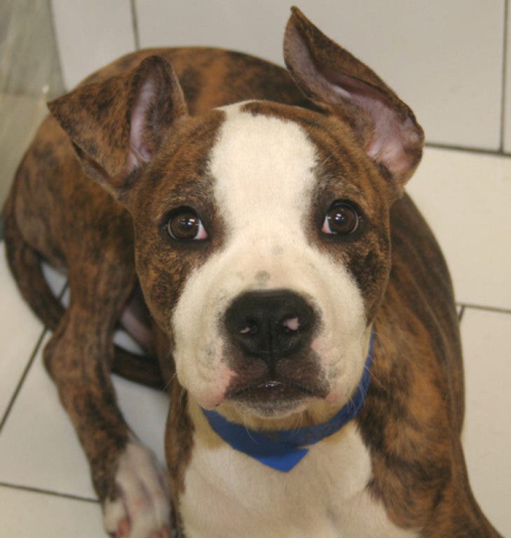Buddy is a 5-month-old Boxer/Pit Bull mix who has the most adorable ears! Sometimes they seem to have a life of their own! Buddy has quickly become a staff and volunteer favorite because of his sweet and playful personality.
