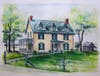 The last painting by Sue Gray is of the only structure shown this week that we haven't lost, Woodside, Maplewood's oldest building. Woodside is at 2200 Bredell. Thank you, Sue.
