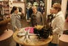 offered hors d'oeuvres to its human visitors and treats to the canine counterparts. gave away free cups of hot punch on the street. offered a wine tasting for the evening, but folks came in to try sips of the vinegars and oils.