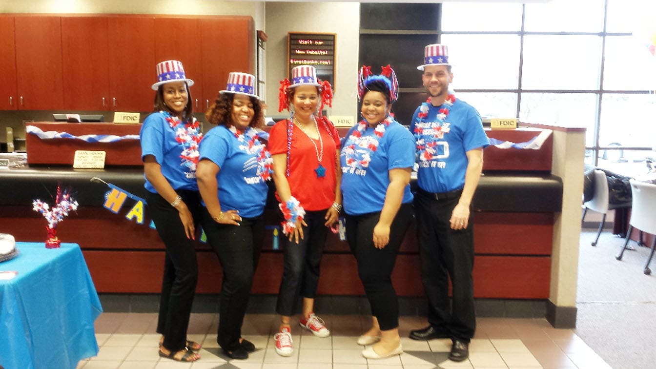 In recognition of 30 years of in-store banking at Dierbergs Market, First Bank held a series of July celebrations for customers at 13 in-store locations throughout Missouri and Illinois.