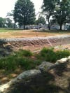 With the church's permission, MSD crews dug a wide ditch between church and neighboring properties and placed decorative rock to function as a barrier. The rain garden will grow in the ditch. MSD added a stormwater drain that's connected to an existing drainage system for any additional flooding on the site.