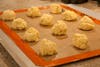 Drop dough onto a lightly-greased cookie sheet, baking stone or silicone mat. Rosenberg recommends using a small cookie scoop to drop the dough; a small spoon would also work. Space the cookies about two inches apart on the baking sheet.