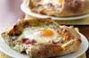 To form crostatas, fold edges of dough up 1-inch over filling, making pleats and pressing dough firmly. Carefully crack open each egg and drop into well on each crostatas. Sprinkle with salt and pepper. Bake 20 – 25 minutes or until egg whites and yolks are firm. Makes 4 servings.