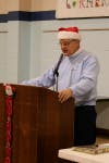 To fill in for the missing entertainment, President Dale Baumann stood up behind the podium and told jokes.