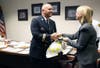 Kevin Reis and Tim Dempsey were both promoted at the meeting amid congratulations from families and friends. Reis has been with the district for 15 years, and Dempsey has been serving for 19 years. Three new firefighter/paramedics were also hired at the meeting, and a separation agreement with former Deputy Chief Joe Smith was approved.