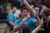 After a warm-up against players from the boys varsity basketball team, the Rams took on the teachers. The wheelchair basketball newbies started off strong; the game was tied 10-10 at the end of the first.