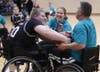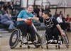 The St. Louis Rolling Rams wheelchair basketball team traveled to Mehlville High School to face off against the teachers.