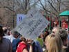 The protestors met with mixed reviews. Some motorists honked in support while one woman shouted Romney's name as she drove through the intersection.