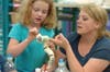 Families bond over painted pottery at Glazed and Confused's $1 family night.