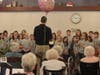 Accelerated Singers group performed on a mini-tour field trip today at several Oakville locations. After a morning warm-up and rehearsal, the fourth and fifth grade students started their tour at their home school, Wohlwend Elementary.